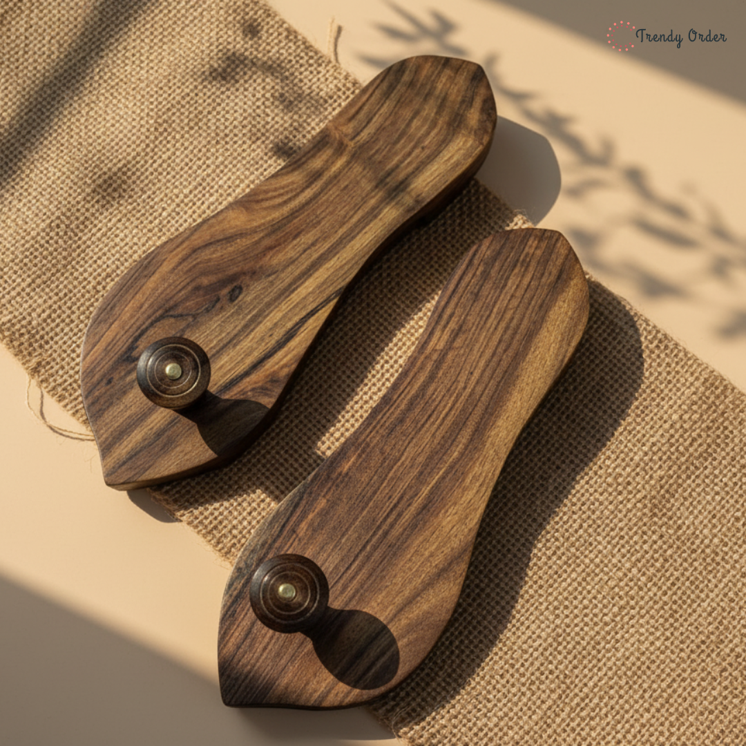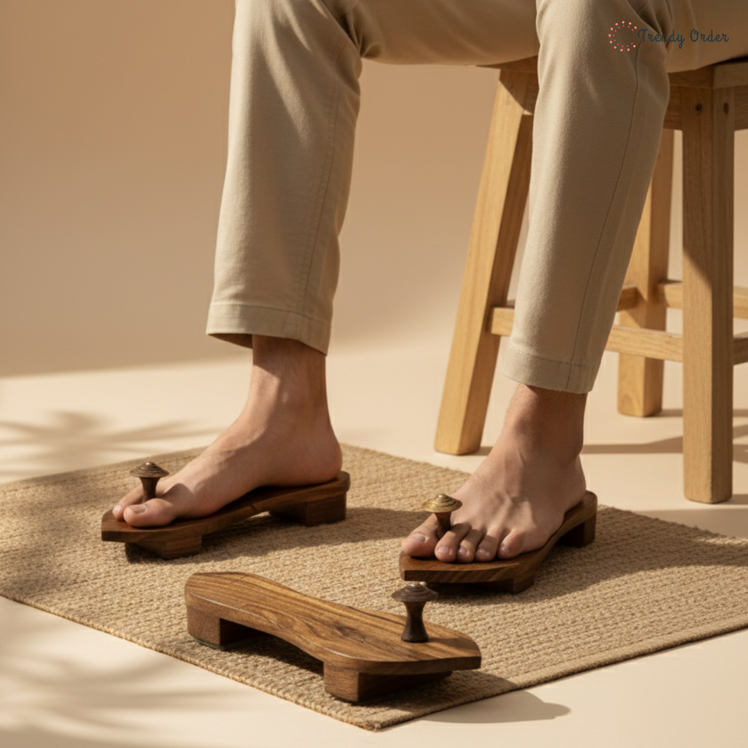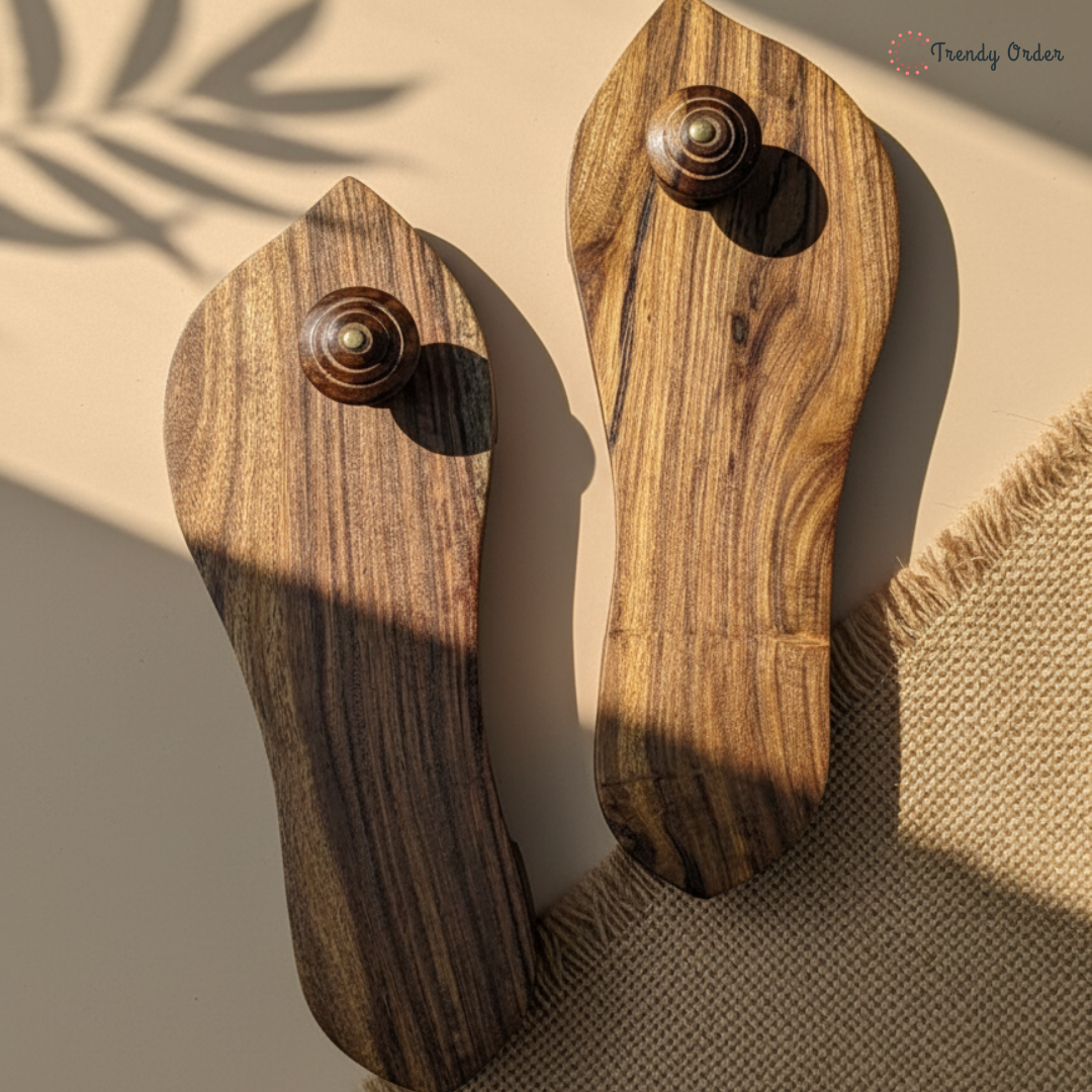 Authentic Wooden Khadau Chappals with Heels Leaf-Shaped Traditional Footwear