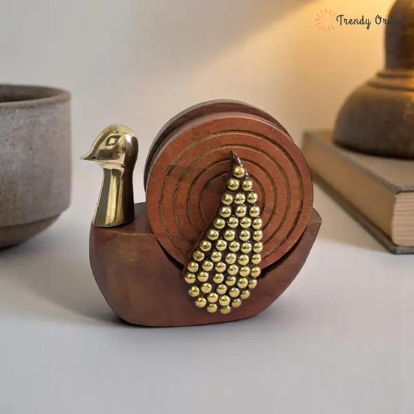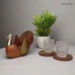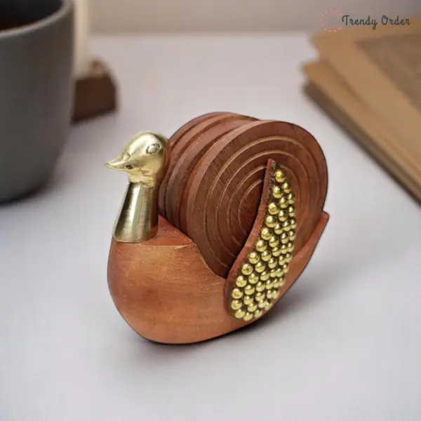 Bring a touch of whimsical elegance to your home with this Wooden Coaster Set. The true highlight is its beautifully crafted duck-shaped holder, which serves as a charming decorative piece for any coffee table, dining area, or side table.