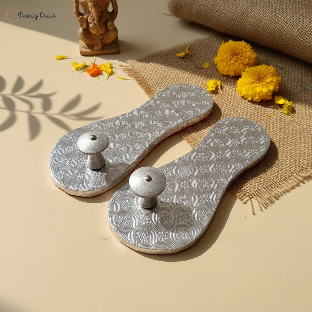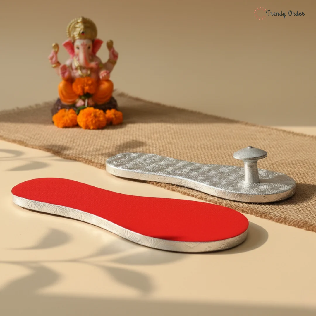 Elevate your puja and home mandir experience with the Trendy Order Silver Khadau – Charan Paduka for Pooja. Crafted with utmost devotion, this exquisite piece is designed to serve as a symbolic representation of Guru Ji’s holy feet during worship and rituals.