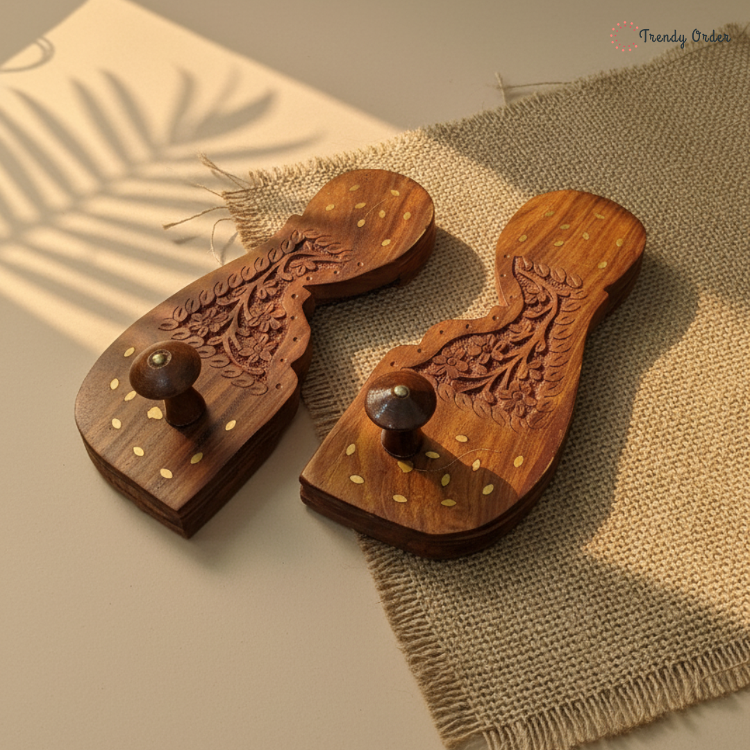 Elevate your spiritual practice with Trendy Order’s exquisite Sheesham Wood Khadau Charan Paduka. These beautifully crafted wooden sandals combine traditional symbolism with elegant artistry, perfect for your home temple or as a thoughtful gift.