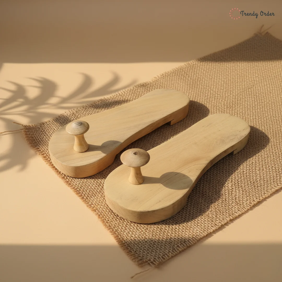 Experience the grounding energy and cultural significance of these Papdi wood Khadau Chappals. Order now from Trendy Order and step into a piece of Indian heritage.
