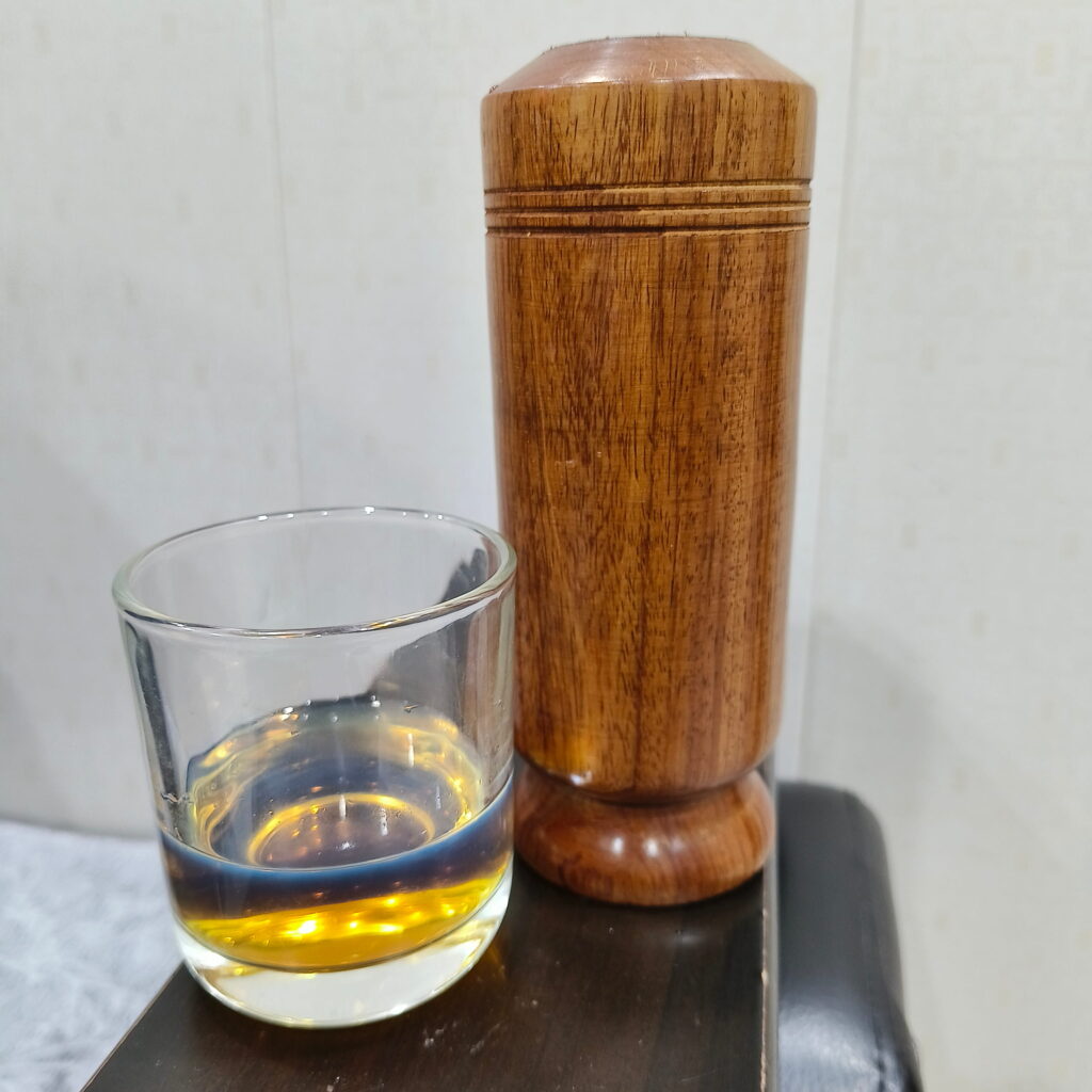 Simply fill the tumbler with drinking water at night and leave it for 8–10 hours. By morning, the water turns light brown as the natural properties of Vijaysar wood infuse into it. Drinking this herbal water on an empty stomach is a traditional Ayurvedic practice used for wellness and metabolic support.