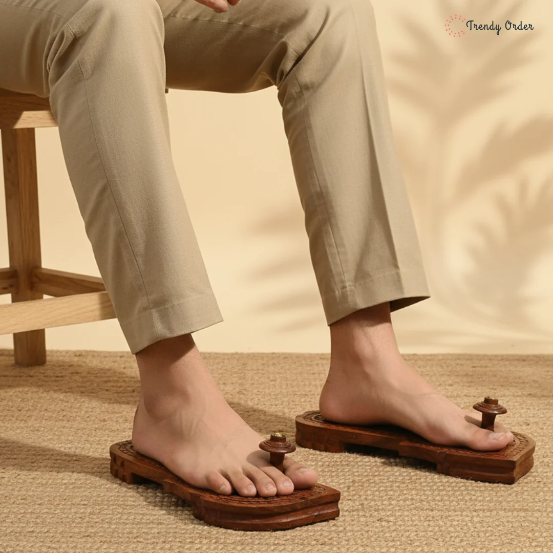 Disclaimer: Please note that due to the handcrafted nature of these Wooden Khadau, slight variations in size may occur compared to standard footwear.